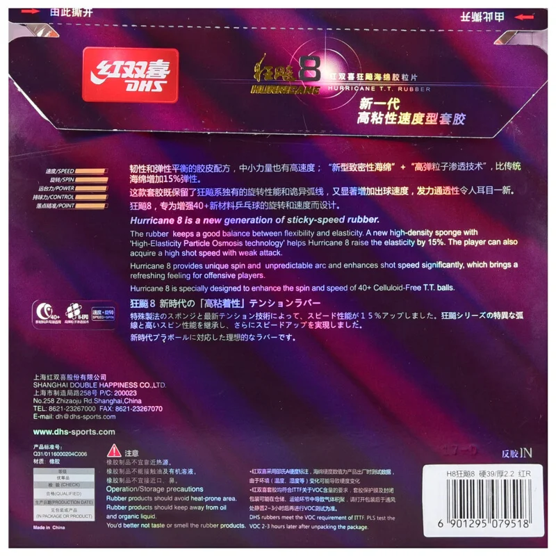 | DHS Hurricane 8 H8 table tennis rubber Original pips-in with sponge rackets ping pong tenis de mesa |
