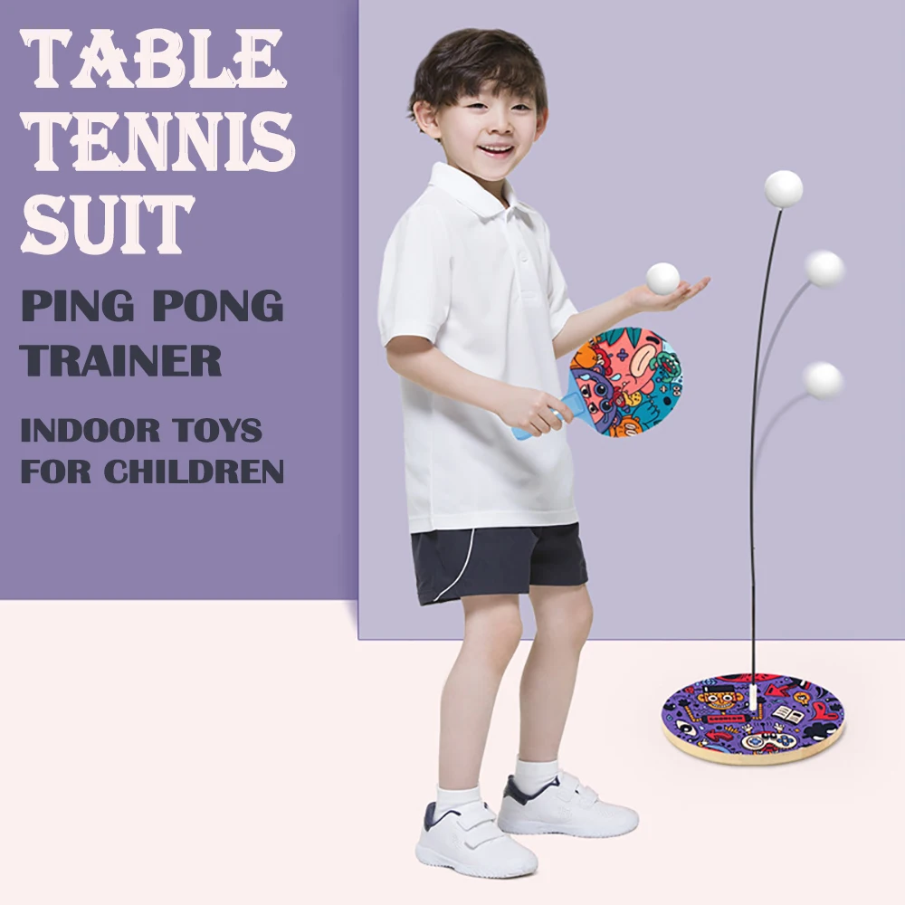 Portable Kids Table Tennis Trainer Ping Pong Training Machine with Soft Shaft Practice Equipment Home Indoor Toys for Children